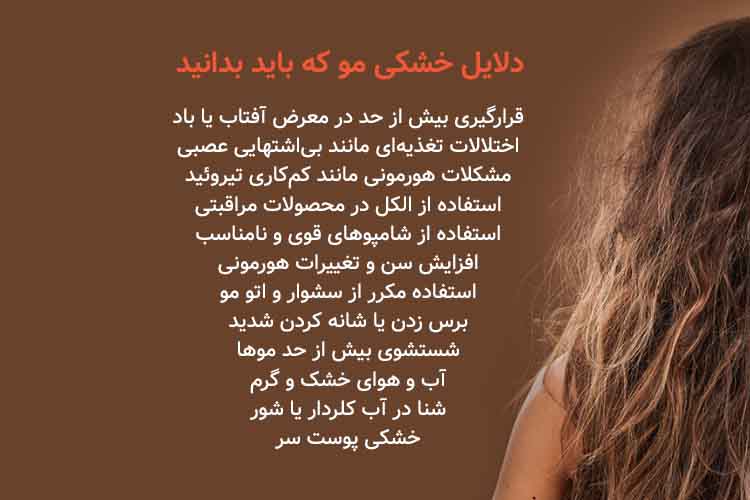 عوامل زیادی میتوانند علت خشکی مو باشند: