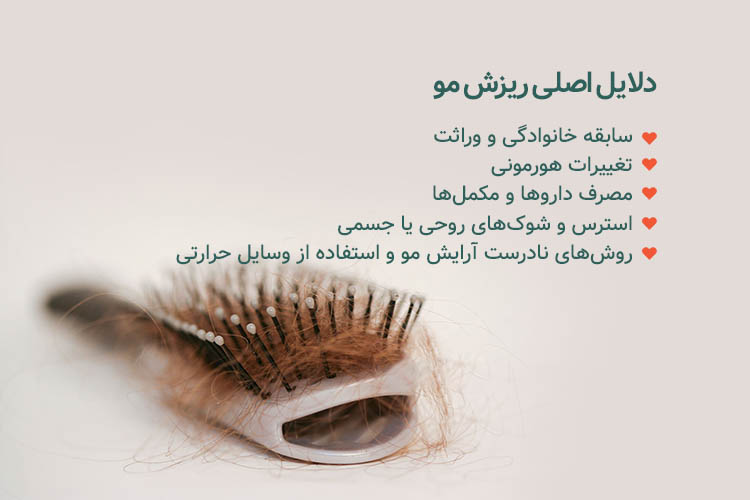 دلایل متعددی میتوانند باعث ریزش مو شوند. در اینجا به مهمترین آنها اشاره میکنیم: