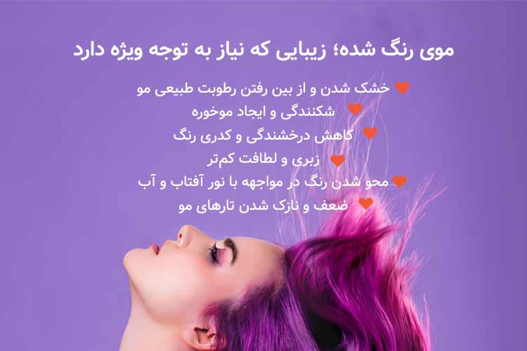 - برای موهای رنگ شده، انتخاب شامپوهای محافظ رنگ و حاوی آنتیاکسیدان، به ماندگاری و درخشندگی رنگ مو کمک میکند.